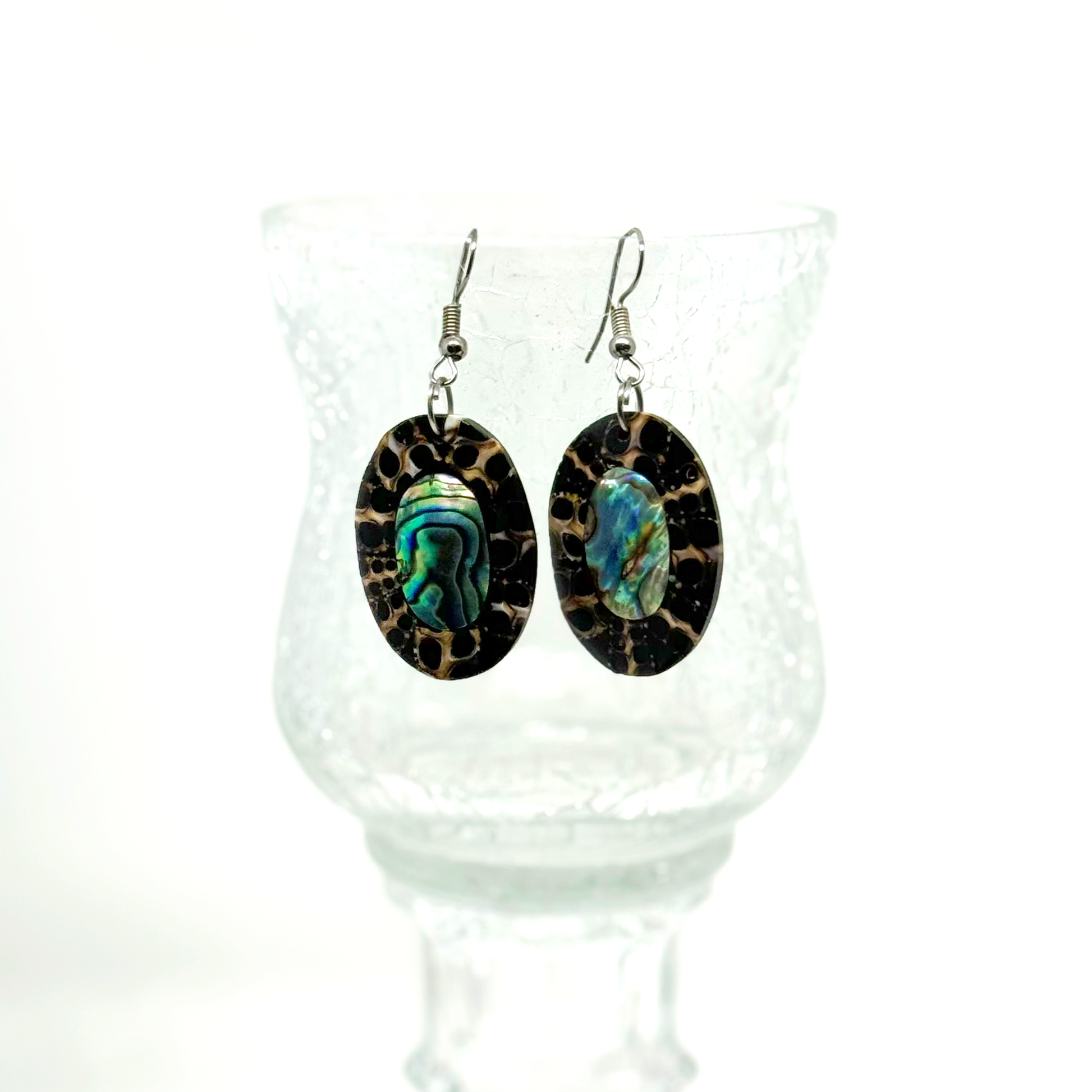 This stunning piece showcases a vibrant array of colors from the shells, radiating beautiful hues of blue, green, and purple. The earrings feature lightweight coconut shell as the backdrop, adding a touch of tropical elegance. Together, they create a harmonious blend of natural beauty and artistic design, perfect for making a statement while remaining comfortable to wear!